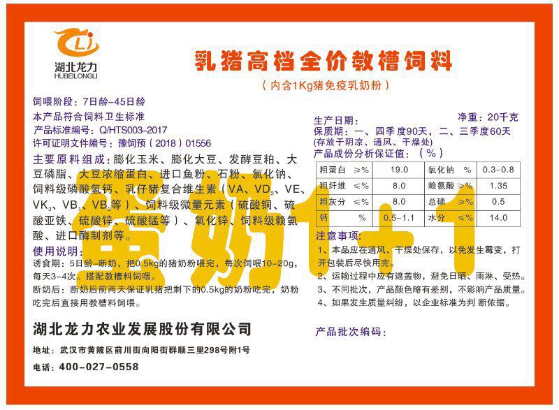 湖北龍力農(nóng)業(yè)發(fā)展股份有限公司坐落于武漢市黃陂區(qū)前川街向陽(yáng)街群順三里298號(hào)附1號(hào)。公司成立于2014年6月,公司自成立以來(lái)把“創(chuàng)全球最大養(yǎng)豬綜合服務(wù)”為企業(yè)愿景。致力于打造教保料品牌”作為公司發(fā)展的明確目標(biāo)。公司一直致力于豬營(yíng)養(yǎng)的研究和開發(fā),積極與國(guó)內(nèi)外高校和科研機(jī)構(gòu)合作,推廣養(yǎng)豬技術(shù)、動(dòng)物營(yíng)養(yǎng)新概念,向世界農(nóng)牧企業(yè)學(xué)習(xí)與合作。公司采用國(guó)內(nèi)先進(jìn)的生產(chǎn)工藝,選擇高精度電子配料秤,高均勻度、無(wú)殘留混合機(jī)等先進(jìn)設(shè)備....